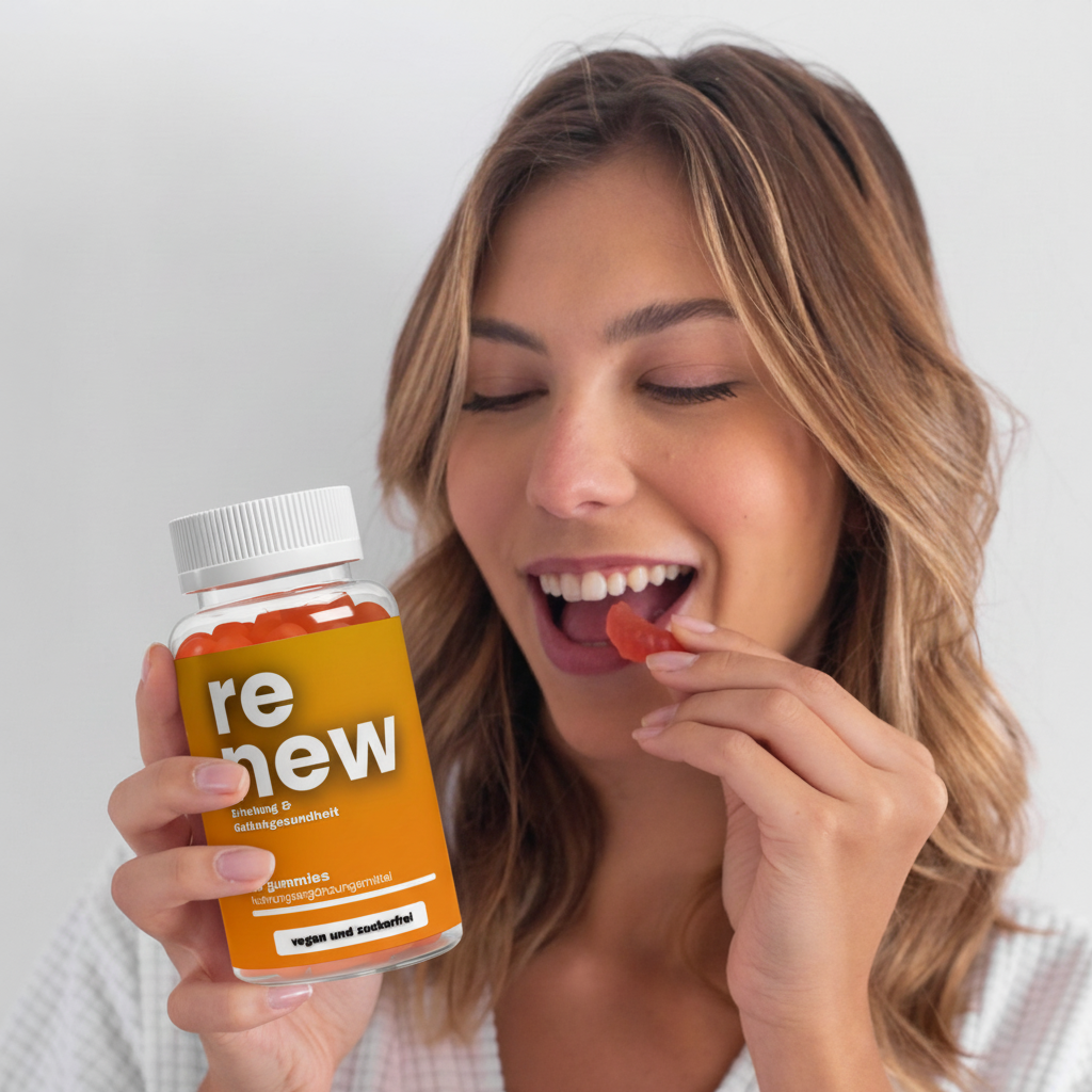 Du solltest pro Tag ein RENEW-Gummie zu dir nehmen. Du kannst dieses einfach kauen und runter schlucken.